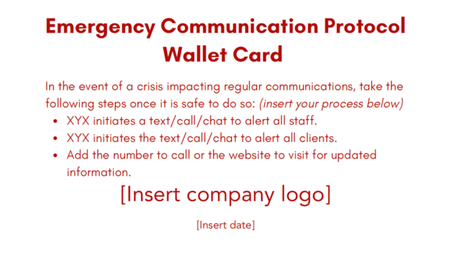 We often encourage organizations to distill their emergency communication process down to a single, wallet-sized card. Not a binder. Not a 40-page plan. Something clear, accessible, and usable under pressure.
